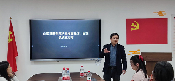 本次活动生命科学学院校友何灵江以“中国基因测序行业发展概述、展望及创业思考”为主题,分别介绍了基因测序的本质、测序技术的发展、应用及产业图谱及未来展望与思考,并结合自身在工作中的经历,为同学们讲述了创业经验与心路历程,为即将进入生物行业工作的同学们,开展了一堂干货满满的经验分享与前景展望会。