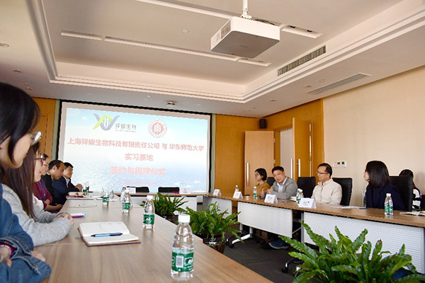 2019年11月11日下午,我校与上海祥耀生物科技有限责任公司本科生实习基地签约与揭牌仪式在上海祥耀生物会议室隆重举行。我校教务处黄鲁霞、生命科学学院副院长江文正、专业实习负责人高红亮、祥耀生物CEO赵文祥等共同出席了签约揭牌仪式。
