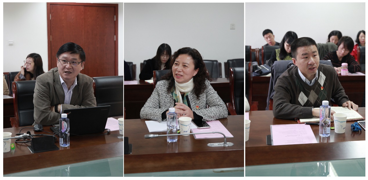 自由讨论中,王群教授结合实验室仪器平台建设为团队发展提出建议;物理学院党委书记、动物学科李恺教授回顾自身经历,有感而发,肯定了动植物学团队资深教师帮扶年轻教师的和谐氛围;杜震宇教授提出在上海市“课程思政”建设背景下,要把思政元素融入到课程中。