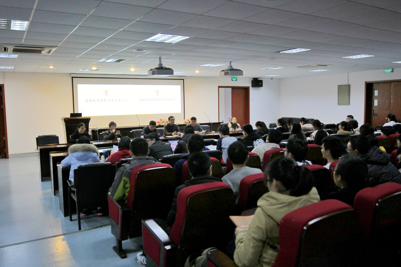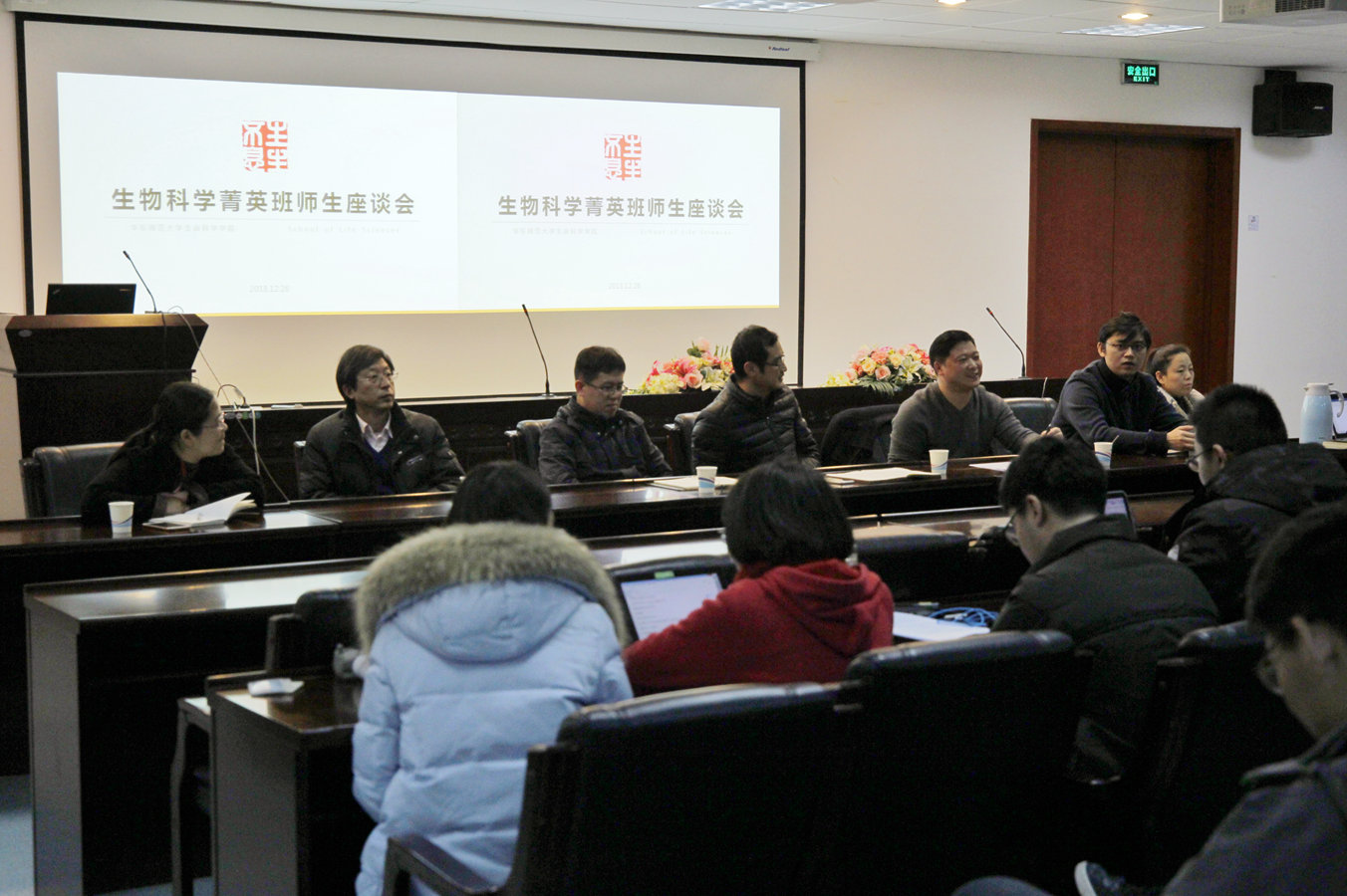 2018年12月26日下午1点,生命科学学院2018-2019学年上学期全体菁英班学生座谈会在生科楼534报告厅顺利举行。我院分管本科生教学工作副院长兼2015级菁英班班主任江文正老师,菁英班工作重要参与组织人赵云龙教授,2016级菁英班班主任马欣然老师,2017级菁英班班主任杨嘉龙老师,2018级菁英班晏军老师,教务金靖老师,菁英班专职辅导员李初旭老师和褚娇娇老师以及生物科学2015、2016、2017、2018级全体菁英班学生共同参与了本次座谈会。会议由江文正老师主持。