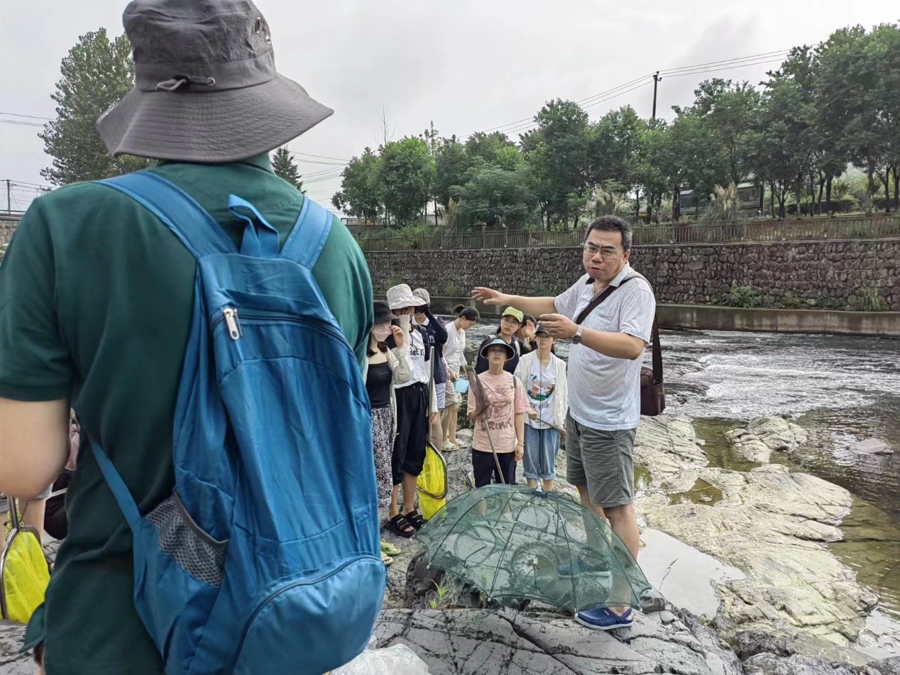 天目山小学附近的天目溪水草丰茂,大大小小的石块铺满河床,是水生生物的乐园,大到虾蟹鱼虫,小到原生生物,各种门类的生物应有尽有。同学们卷起裤腿踩入溪流中,冰凉的溪水为酷暑降温不少,仿佛将同学们带回了可以尽情戏水的童年。带着采集到的水生生物,同学们回到住处对它们进行了分类鉴定:鱼类、虾蟹、螺类、昆虫幼虫、涡虫、浮游生物……通过肉眼和在显微镜下的观察,同学们看到了不同生物的精妙结构,让我们在感叹生命神奇的同时,也巩固了书本上的相关知识。
