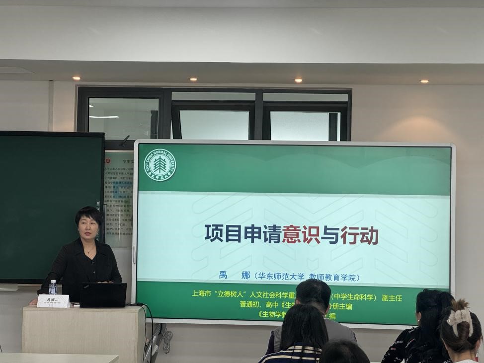 对于项目申请许多老师都跃跃欲试,但面对长长的项目申请书和项目周期又望而却步。下午的培训中,华东师范大学教授禹娜老师直击教师在项目研究上的痛点,以“项目申请意识与行动”为主题,详细剖析了项目申请书的题目、背景和意义、选题依据、研究方案、可行性、预期成果、阶段性安排等组成要素,借助真实案例为老师们提供了切实可行的理论思考和方法论指导。