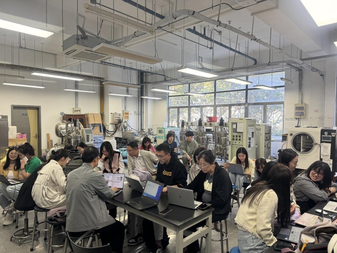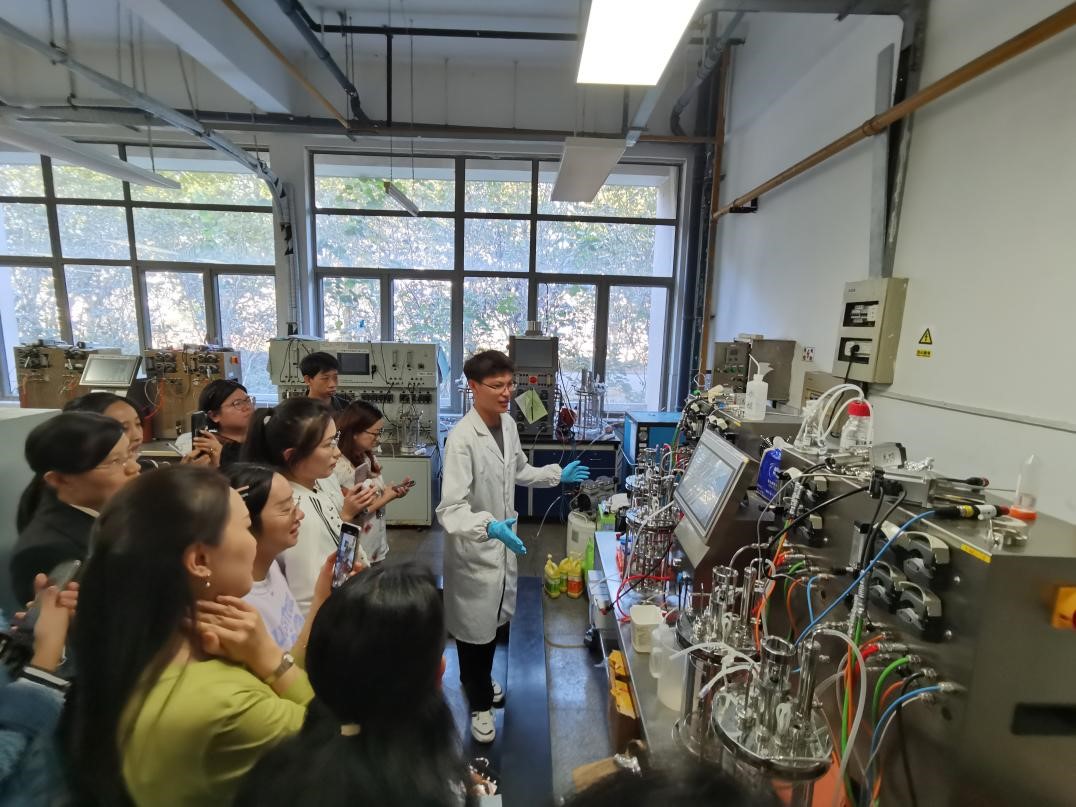 发酵工程与农业、食品工业、医药工业等有着密切的联系,也是高中生物教材选必3中的重要内容。在高红亮副教授带领下,老师们先是就发酵工程进行了理论学习,接着在虚拟仿真软件上沉浸式完成了发酵工程的模拟实验,最后在助教老师的实物演示和细致讲解下,完整体验了发酵的整个过程,也为课堂实践积累了丰富的图文和实证材料。