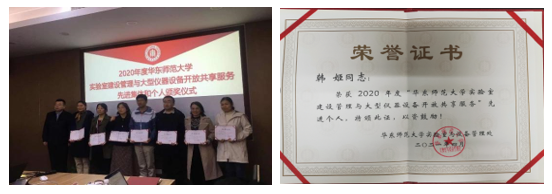 实验室建设管理先进的评选周期为两年一次,本次与大型仪器设备开放共享服务共评选出先进集体10个,先进个人15人。其中,我们学院仪器共享平台喜获“2020年度实验室建设管理类先进集体”称号,上海市调控生物学重点实验室韩姬老师喜获“2020年度实验室建设管理类先进个人”称号。