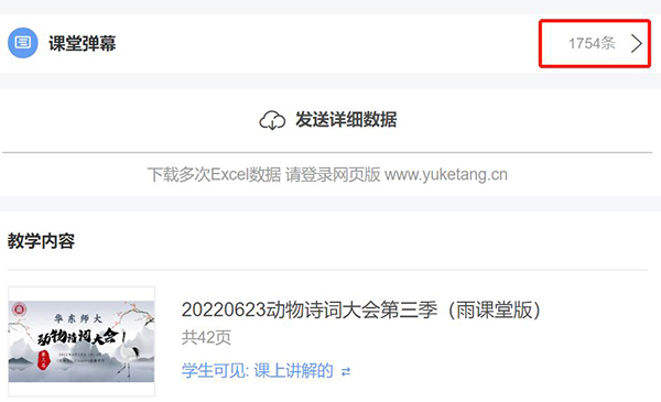 在第三届动物诗词大赛中,精彩场面连连不断,雨课堂中百人团参与也十分活跃,贡献了1754条弹幕的历史新高。第三届动物学诗词大会十分精彩,期待下一届的精彩表现!