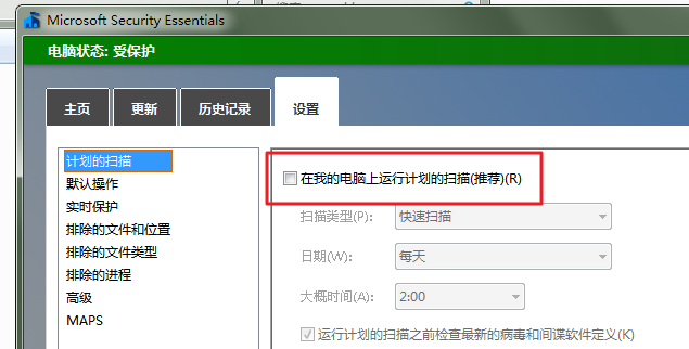 Microsoft Security Essential: 微软安全软件(MSE)设定