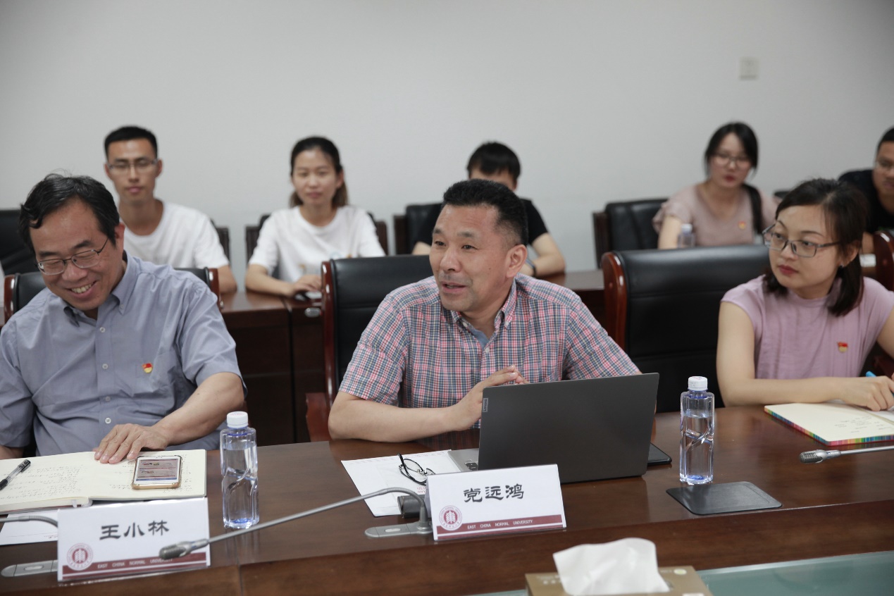 6月19日下午,生命科学学院生物学系教工党支部“奋斗是青春最亮丽的底色——学习总书记《在纪念五四运动100周年大会上的讲话》”专题组织生活会在学院534会议室举行。教育部党建联络员、复旦大学原党委副书记王小林教授、学院党委书记党远鸿老师、校组织部副部长童愈亮老师受邀出席观摩,生物学系全体教工党员、共建研究生支部委员等一同参加了组织生活。