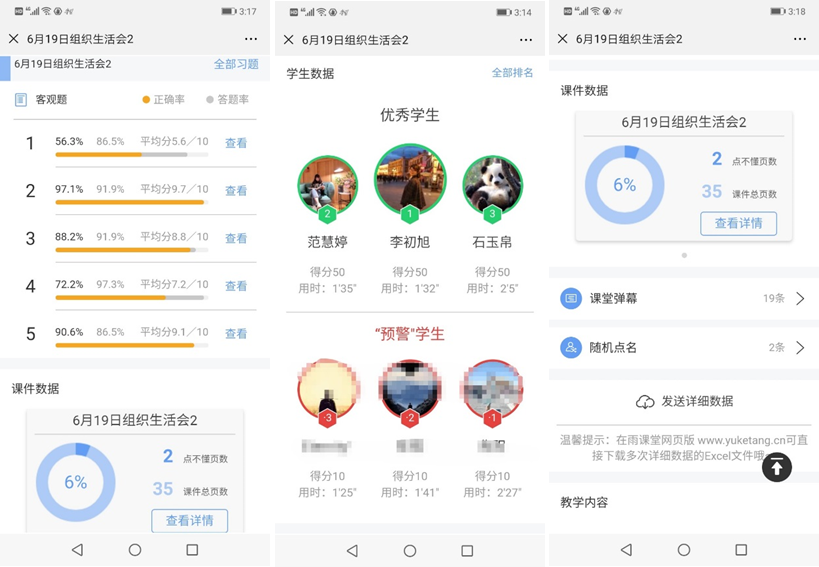 党支部更是发挥“雨课堂”的监测功能,实时记录党员在组织生活会中的学习轨迹,形成基于大数据的组织生活记录,这将是对传统组织生活记录本的有益补充。