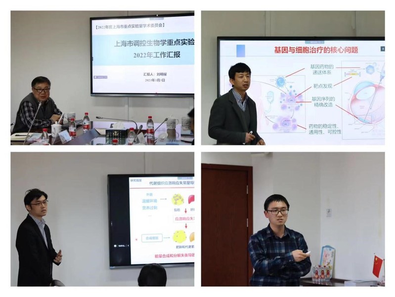 上海市调控生物学重点实验室主任刘明耀作工作汇报,向各位委员介绍重点实验室过去一年在科学研究、师资建设、人才培养、运行管理与开放交流等方面的工作进展。重点实验室副主任李大力介绍上海市基因编辑与细胞治疗前沿科学研究基地的建设情况,以及研究团队在基因编辑与细胞治疗、合成生物学等领域的人才培养、科学研究、基地建设等最新进展。重点实验室课题组长马欣然、张楫钦随后分别围绕“应激与代谢稳态调控”、“非病毒定点整合CAR-T技术”主题作代表性工作报告,介绍课题组在相关研究领域的最新成果及科研进展。