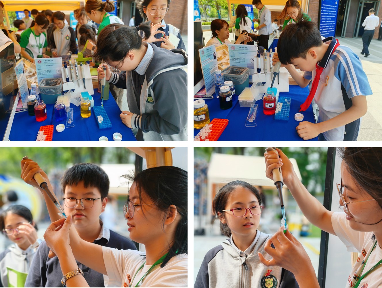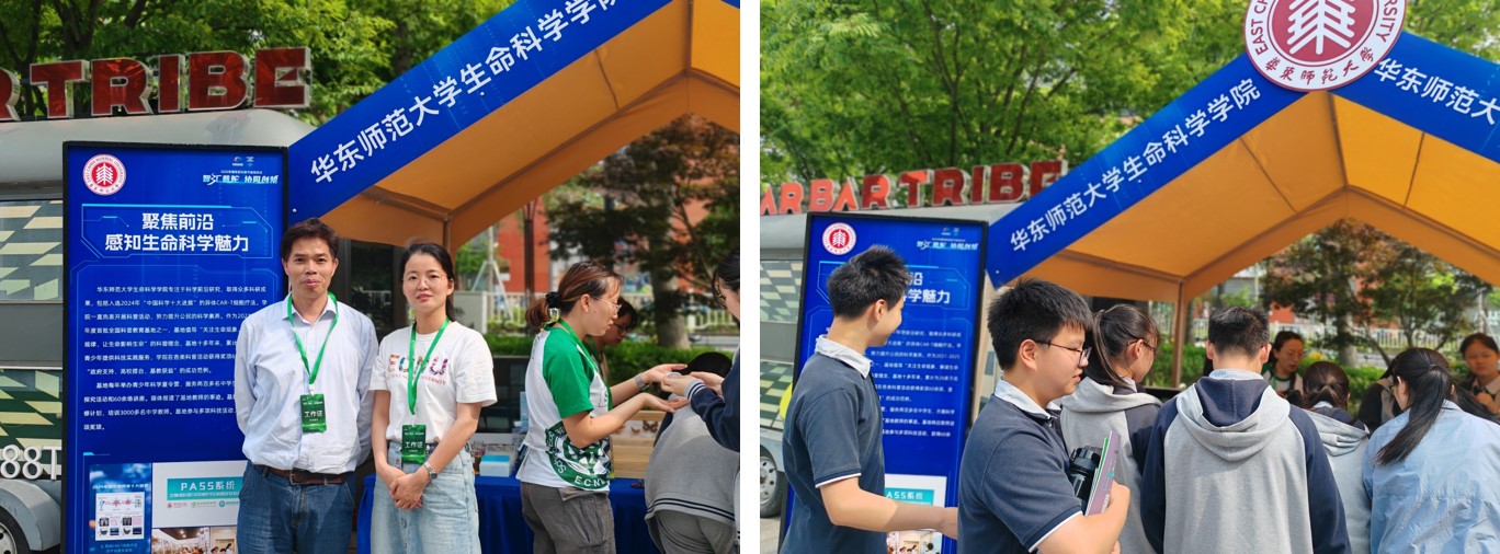 华东师范大学生命科学学院科普教育基地是2021—2025全国首批,也是我校首家全国科普教育基地,本次活动基地展示了学院最新科技成果,包括入选2024年“中国科学十大进展”的异体CAR-T细胞疗法;发表在 Science、Nature、Cell 等顶级期刊上的成果;同时设计了一系列富有互动性、趣味性的实践项目,目的是弘扬科学家精神、传播科学思想、营造爱科学、爱创新的良好社会氛围。