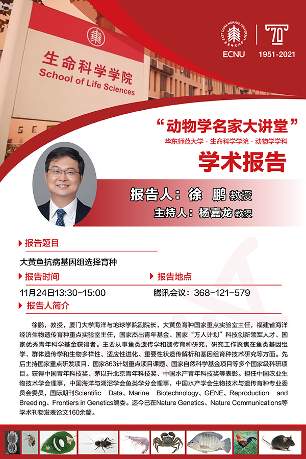 徐鹏,教授,厦门大学海洋与地球学院副院长,大黄鱼育种国家重点实验室主任,福建省海洋经济生物遗传育种重点实验室主任,国家杰出青年基金、国家计划创新领军人才、国家优秀青年科学基金获得者。主要从事鱼类遗传学和遗传育种研究,研究工作聚焦在鱼类基因组学、群体遗传学和生物多样性、适应性进化、重要性状遗传解析和基因组育种技术研究等方面。先后主持国家重点研发项目、国家863计划重点项目课题、国家自然科学基金项目等多个国家级科研项目。获得中国青年科技奖、茅以升北京青年科技奖、中国水产青年科技奖等表彰。担任中国农业生物技术学会理事,中国海洋与湖沼学会鱼类学分会理事,中国水产学会生物技术与遗传育种专业委员会委员,国际期刊Scientific Data、Marine Biotechnology、GENE、Reproduction and Breeding、Frontiers in Genetics编委。迄今已在Nature Genetics、Nature Communications等学术刊物发表论文160余篇。