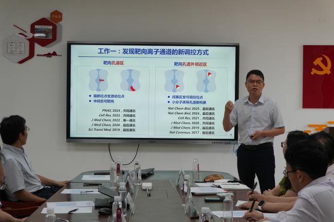 随后,学院五位青年教师代表分别进行研究工作汇报。阳怀宇教授以“靶向离子通道的药物设计”为主题,分享了团队在抗癫痫、抗抑郁、镇痛等方向的新药开发策略。其通过模拟离子通道动态构象变化,挖掘新调控位点与选择性激动剂,已发现多个潜在靶标与候选分子。研究成果多次发表于《Nat. Chem. Biol》《Sci. Transl. Med》并实现成果转化,赋能精准神经药物研发。