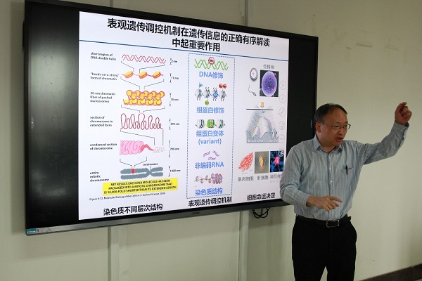 生命科学学院翁杰敏教授以“DNA甲基化与组蛋白脂酰化靶向研究”为题,介绍了其实验室基于表观遗传学的一些研究工作。从DNA甲基化和去甲基化与疾病之间的联系,特别是与肿瘤的关系,介绍了DNA甲基化与组蛋白修饰相互作用,也为靶向表观遗传治疗肿瘤等疾病提供了新的思路。