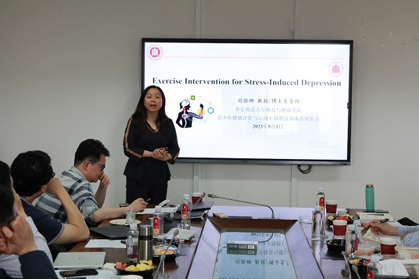 体育与健康学院刘微娜教授以“抑郁症的运动干预效应及生理机制”为题,介绍了运动干预与动物抑郁之间的联系。通过CUMS抑郁症动物模型,从HPA轴、神经炎症、代谢、神经可塑性等方面解析运动抗抑郁的生理机制。