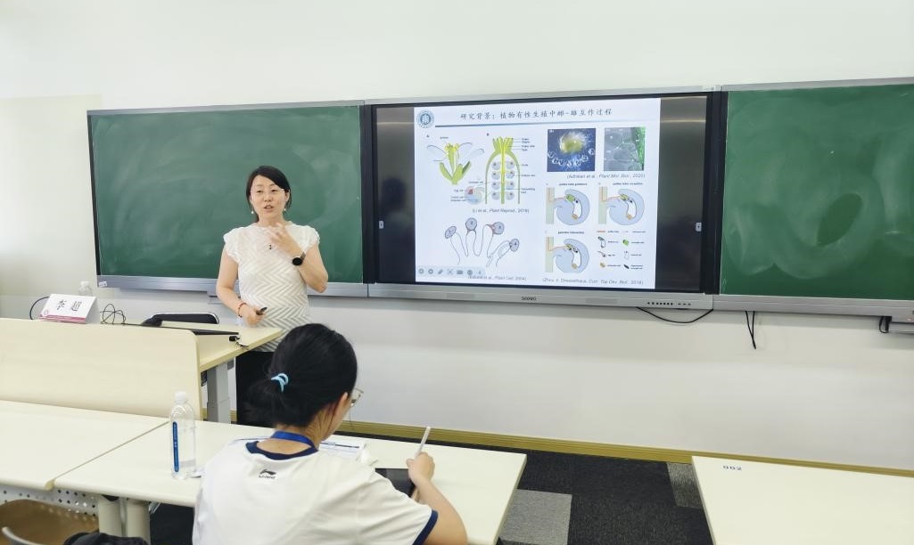 下午,同学们聆听了来自生命科学学院李超教授的植物学专题报告。李超教授以拟南芥为模型,深入剖析了植物有性生殖中雌蕊与雄蕊互作的精妙分子机制。整场报告生动展示了从表型观察到基因筛选、功能验证直至生化机制解析的完整植物学研究范式,将深奥的分子互作过程以清晰逻辑呈现,激发了营员对生命精密调控机制的浓厚兴趣。