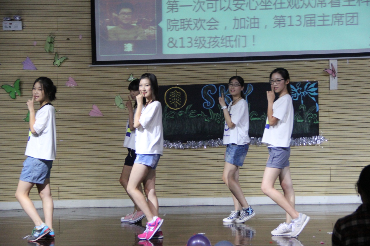 整个晚会中亮点频现。晚会前的小视频,描绘了一位恐龙新同学刚入校的场景,辅导员和学姐学长们对全体新生的热情欢迎。开场舞《Igotaboy》,六个女生在舞台上表现出了青春的活力与张扬,氛围也热烈了起来。紧接着主持人们盛装出场解读了晚会主题,晚会正式拉开帷幕。生科院党委副书记徐敏华老师也给晚会送上了一段精彩的致辞。之后就是百花齐放的节目,有展现生物系特色的合唱《游离的核糖体》;有文艺地歌咏宝黛爱情的歌舞《枉凝眉》,优雅的小提琴和长笛合奏曲《卡农》,感性的诗歌朗诵与表演《遇见》;有搞笑时尚而温暖的小品《寝室里的那些事》;有引起共鸣的歌曲串烧《好心分手》《珊瑚海》《恋爱ing》;还有各式各样的舞蹈:藏族同胞优美而大气的民族舞《吉祥》,大三热情奔放的《danceagain》,研究生新生热情奔放的舞蹈《最走红》,中医大欢乐活泼的小清新《tellmetellme》。最后还有主席团兼可爱、搞笑与性感与一体的互动环节,送出了小礼品。全过程人人墙上各种同学老师的互动也是一道亮丽的风景。