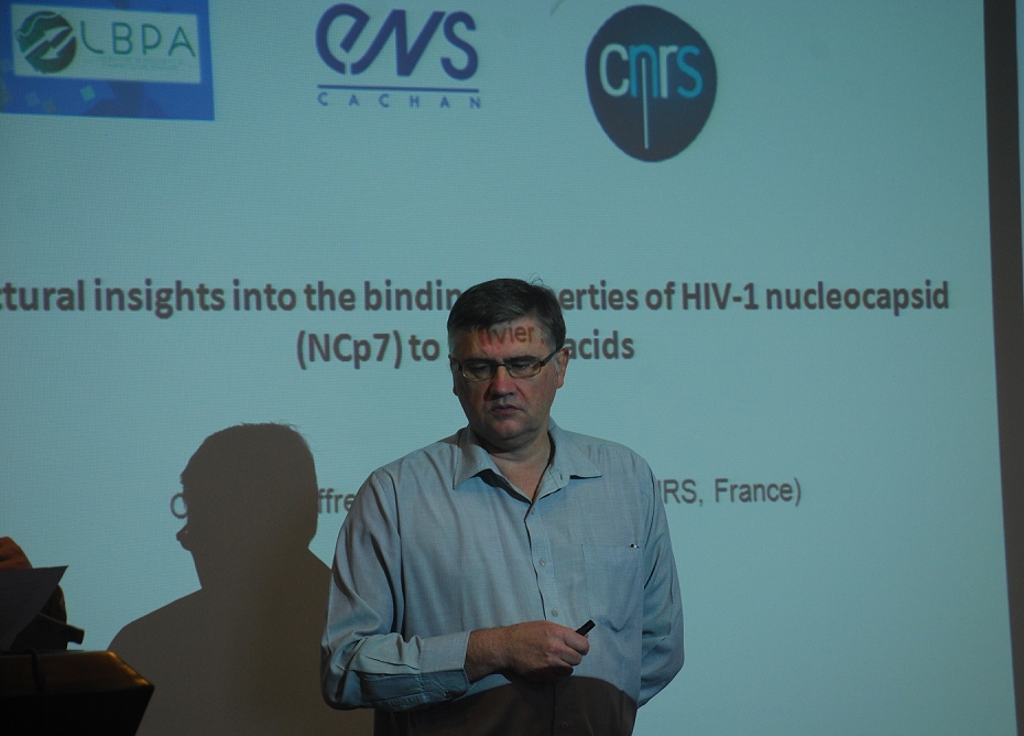 10月16日,应华东师范大学生命科学学院翁杰敏教授之邀,法国国家科学研究中心,法国加香高等师范院校的Olivier MAUFFRET教授来访我院并进行学术交流,做了题为“Nucleic acid binding properties and chaperone activity of HIV-1 nucleocapsid protein”的精彩学术报告。
