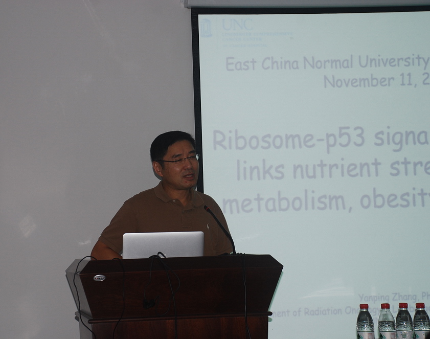 11月11日上午,应我院翁杰敏教授之邀,美国北卡罗来纳大学放射肿瘤学系和Lineberger癌症中心终身教授Yanping Zhang教授前来我校进行学术交流,并在闵行生科院534报告厅做了题为“The RP-Mdm2-p53 pathway links nutrient stress to lipid metabolism, obesity, and cancer”的精彩学术报告。