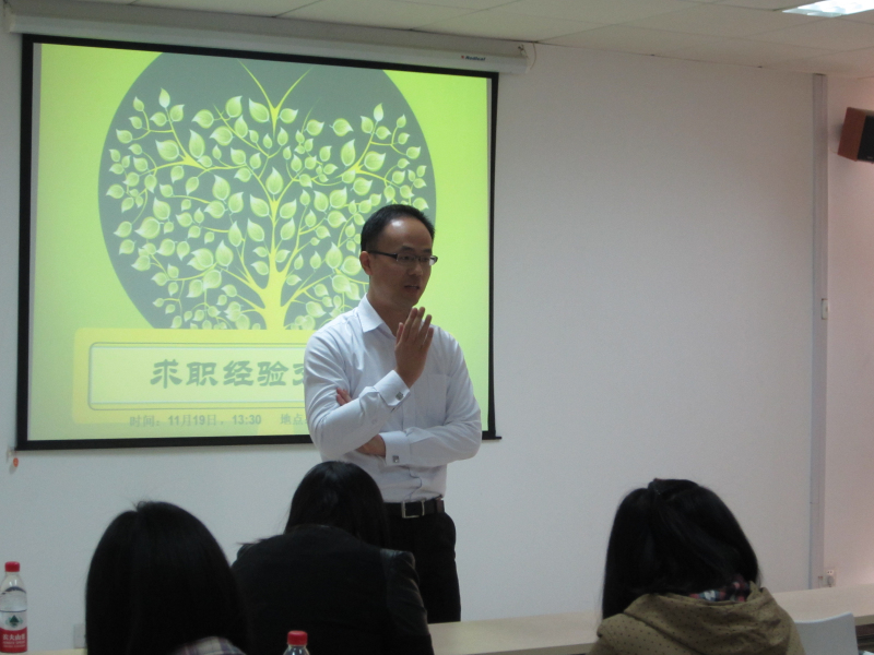 11月19日下午,生命科学学院优秀校友求职经验交流会在生物楼159教室举行,我院2008届硕士毕业生乐观、2010届硕士毕业生戴崝、2011届硕士毕业生宋文程和2013届硕士毕业生孙立梅四位优秀校友应邀参加,研究生毕业班辅导员赵娟老师主持交流会。