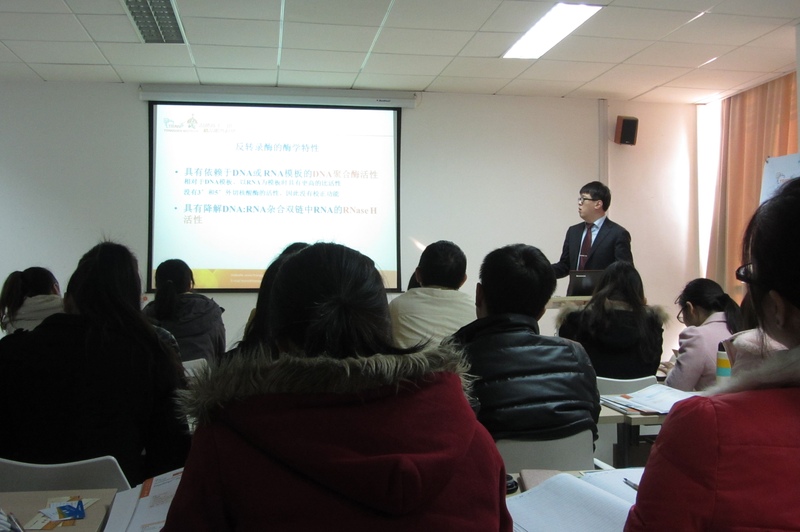 2013年12月4日下午,由生命科学学院研究生会实践部举办,题为“RT之路四十三年——从基础理论到前沿技术”专题技术讲座在闵行生物楼159室举行。本次讲座邀请北京全式金生物技术有限公司实验技术部部长赵振东博士为主讲人,生科院众多硕士和博士研究生均到场参加,场面热烈。
