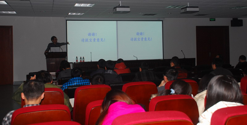 陈老师非常高兴也非常耐心的回答了同学提的各种问题,而且赞扬同学的观察力仔细,思维活跃,问的问题非常好,并不断鼓励大家多多提问,整个会场都沉浸在热烈讨论中,相互交流的学术氛围当中。最后学术报告在大家热烈的掌声中落下帷幕。