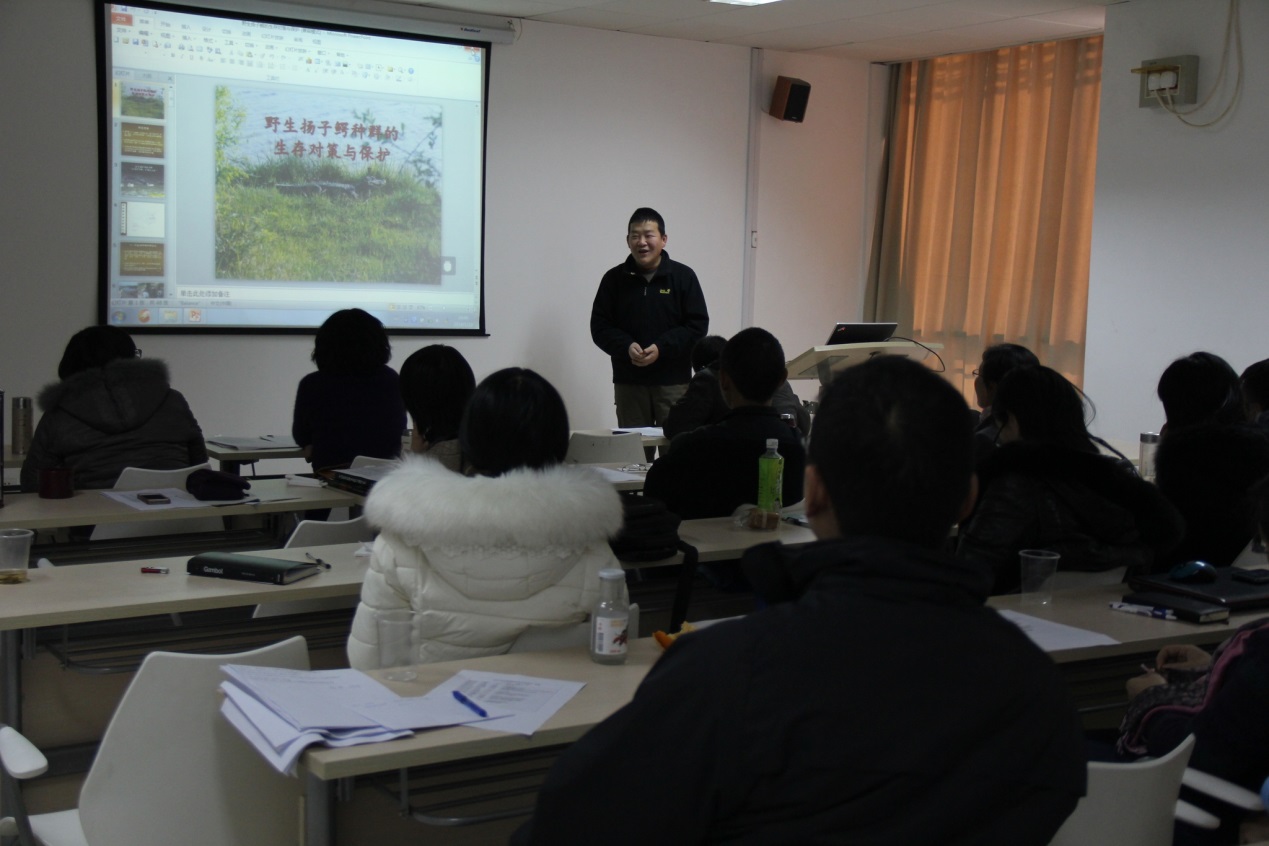 生态学方向的王正寰、丁由中和汪承焕老师分别介绍了大鲵与扬子鳄保护生物学以及湿地生态多样性的研究工作,从而让大家了解了这我国这些珍稀动物目前的濒危情况。而正是生物系生态学的老师在野外所进行的长年默默无闻的艰苦跟踪和调查,才使得中国政府和国际动物保护组织能够真正掌握和了解这些濒临灭绝的人类朋友的过去、现状和可推测的将来。从这一点而言,华东师大生科院生态学方向的老师们功不可没。