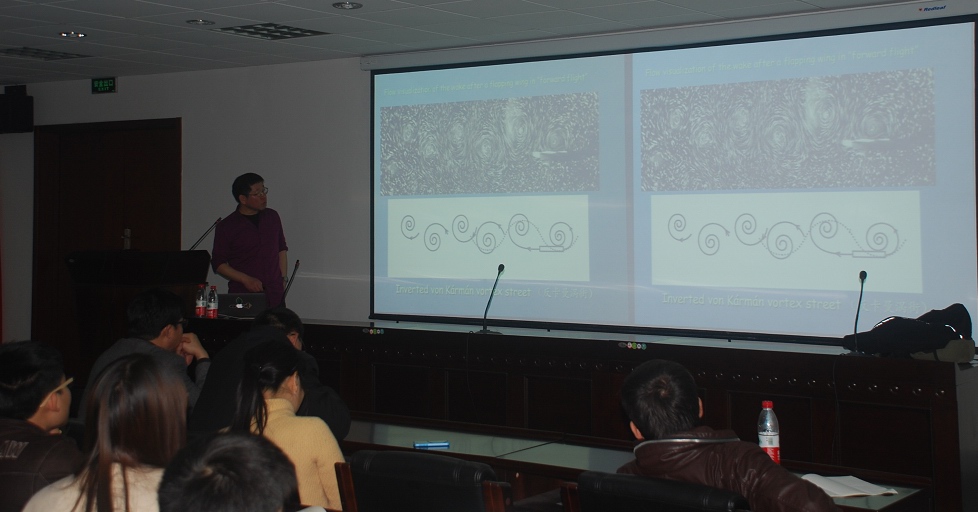在历时60分钟的报告中,张教授用幽默风趣的语言介绍了动物飞行和游弋的力学原理,探讨了定常流体和非定常流体在流体介质中的不同行为和物理规律。结合生物系学科的特点,张教授尤其详尽地阐述了其课题组在鸟类羽翼和鱼类尾鳍在飞行和游弋中的生物动力学研究领域的研究成果和相关基本原理,让在场师生获益匪浅。张教授的演讲生动形象,用通俗易懂的语言和生科院师生分享了生物学和物理学的美妙结合,引起了在座师生的极大兴趣。因此,在提问环节,师生提问踊跃,而张教授也以渊博的知识和循循善诱的态度为每一位提问者作详尽的解答,不仅探讨了生物力学的基础知识,还探讨了科学研究的方法和基本态度。最后,张教授还诚挚的邀请每一位热爱生物力学的师生广泛参与其在上海纽约大学暨华东师大的流体物理实验室的筹建工作中来。