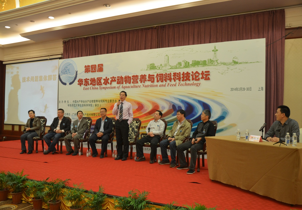 2014年3月28日至30日,来自国内16个省市的400余位水产营养和饲料领域科研院所和企业公司的代表齐聚上海市奉贤区,参加由华东师范大学生命科学学院主办的第四届华东地区水产动物营养与饲料科技论坛。我院水生动物营养与环境健康实验室陈立侨教授、杜震宇教授、禹娜副教授、李二超副教授、张美玲副教授,带领实验室40余位博士、硕士生,在动物学科赵云龙教授、王群教授、周忠良副教授课题组的支持参与下,齐装上阵,共同打造了一场顺利而圆满的行业盛会,得到了所有与会代表的一致赞誉。