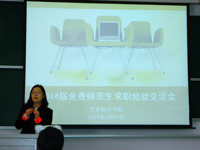3月27日下午, 2014届生物科学免费师范生求职经验交流会在1教107顺利举行。