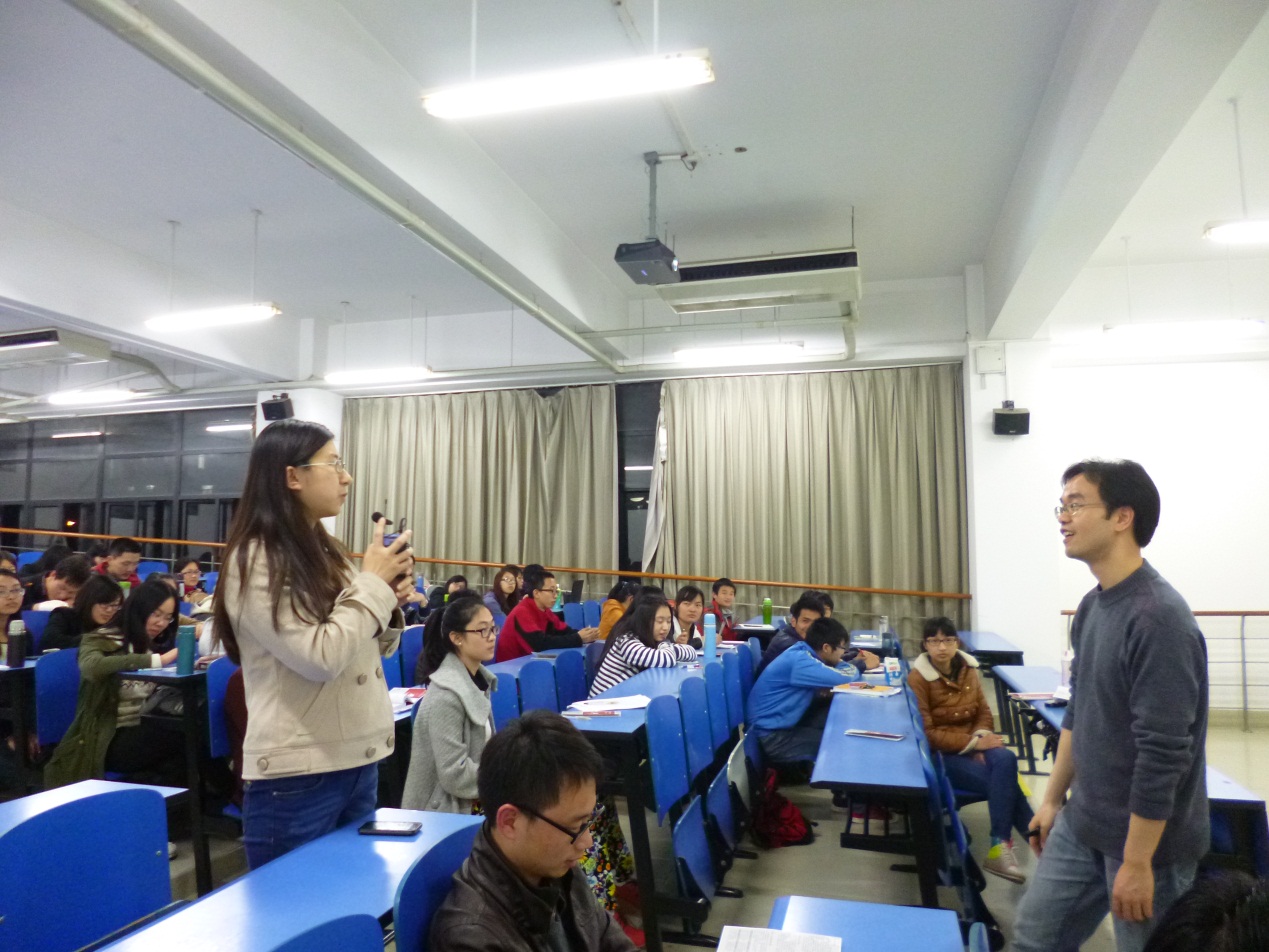 在讲座过程中,同学们认真听讲,做着笔记,并和嘉宾积极互动,教室里时不时爆发出阵阵的笑声和掌声。在最后的问答环节中,同学们踊跃提问,而郁宏翔也为同学们作了仔细认真的回答。通过这次讲座,同学们受益匪浅,对于如何找暑期实习也有了一个全新的认识,希望他们都能找到一份理想的暑期实习机会,并由此获得一个好的工作机会。