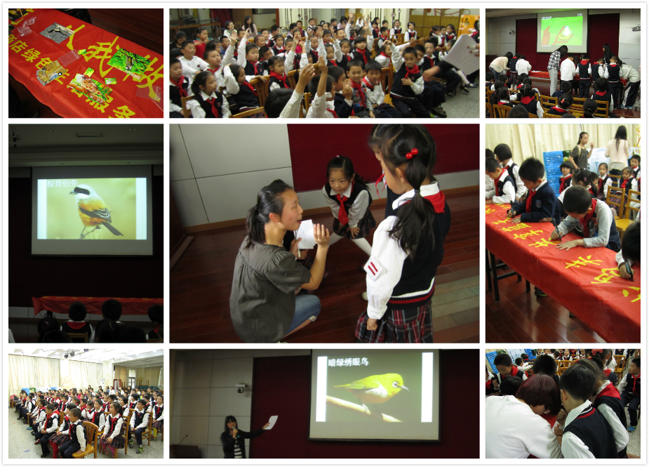 2014年5月19日下午,上海市闵行区华坪小学校园中出现了一些新面孔,来自华东师范大学生命科学学院科学商店的志愿者们带着精心准备的科普课程来到小学生中间,大手拉小手,保护鸟类,共享蓝天。