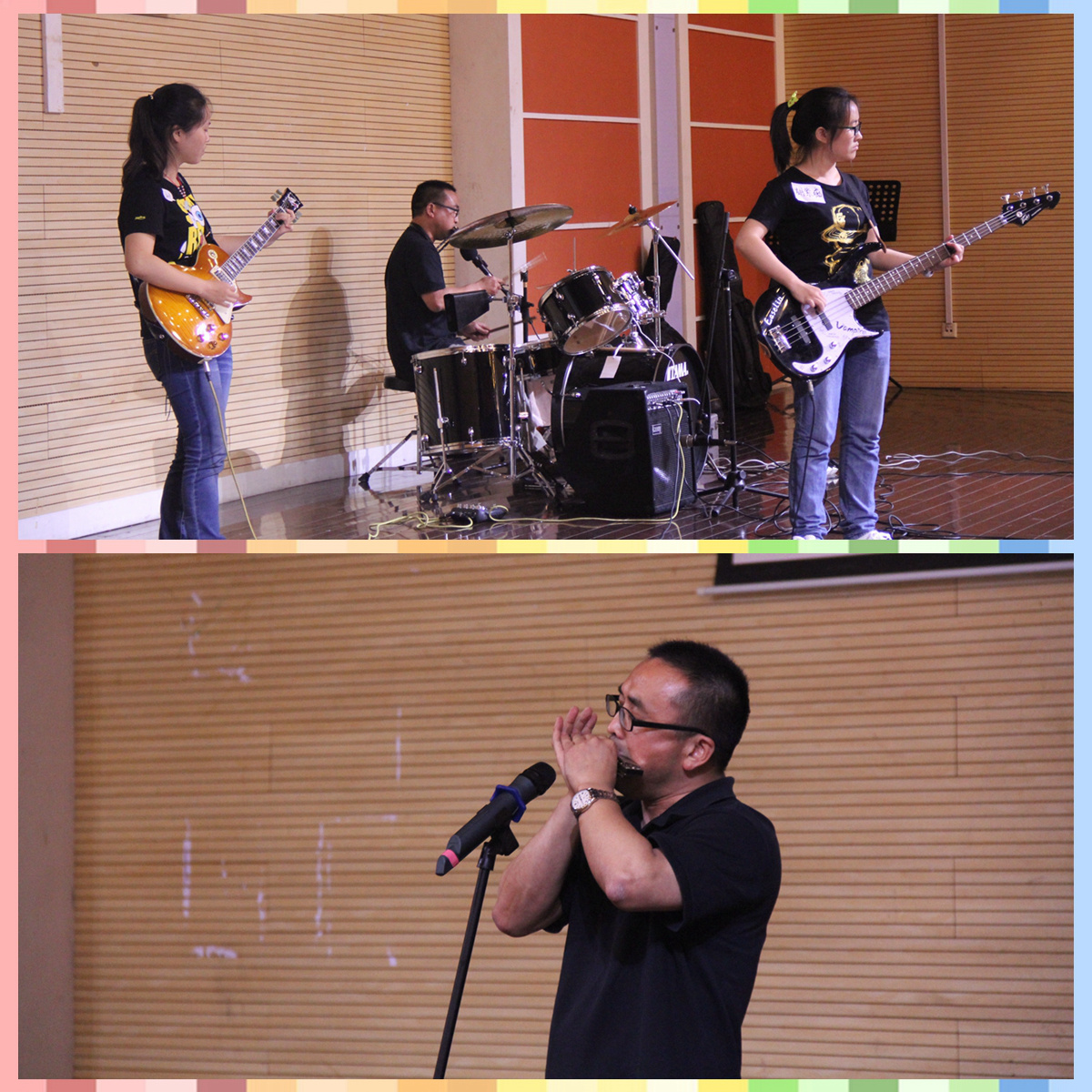 学生的表演精彩纷呈,教师的表演更是惊艳无比。生科院多才多艺的易正芳老师带领着乐队,文艺范十足,打着架子鼓,吹着口琴,一秒钟从学术牛人变身文艺青年,引发一片欢呼与掌声。