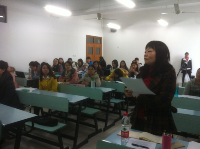 2014年12月3日上午9:00在闵行校区第三教学楼322教室,2012级师范生如期举办教育见习的第二次课堂教学技能训练活动。本次活动共历时6个小时。我们有幸地请来了闵行中学副校长韩雁老师为师范生评课和讲座,参加本次活动的还有教育见习任课教师栾瑞红老师。