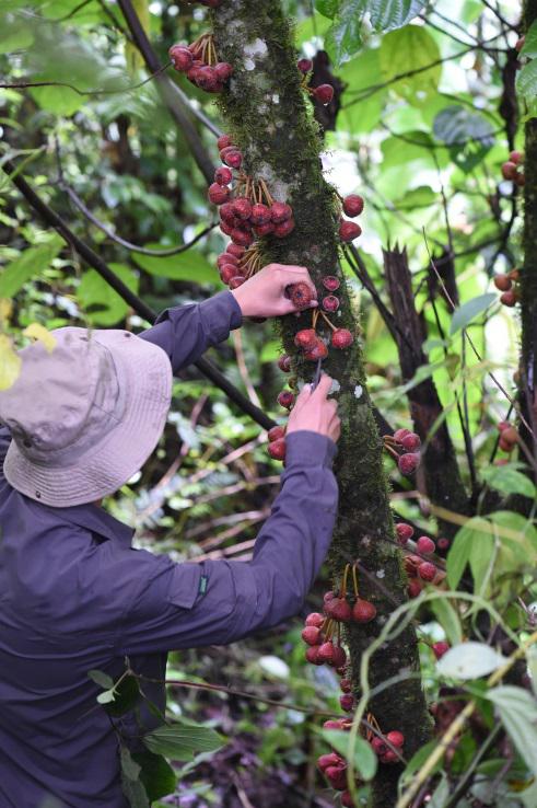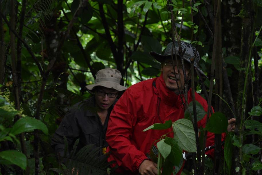背崩位于墨脱县西南实控线(非法麦克马洪线),距县城29.11公里。地处边防前沿,地理位置特殊。自然资源丰富,尤其是森林资源较为富庶,除了数十种名贵的兰花外,还有国家重点保护的乌木、藤竹等名贵树种。背崩是进入墨脱后的首要目标,令人惊喜的是益西卓玛的家就在背崩。当车子经过2个小时的颠簸到达乡政府门口,看门人得知我们是益西卓玛就读大学的老师,热情地为我们开门指路。卓玛的爸爸香嘎大叔亲自迎接我们作为向导带我们进山林,并带着一把大砍刀“哗、哗、哗”的开路。亚热带气候培育了丰富多样的物种,一路上发现许多榕属的植物,此行的重要科考任务肯定可以顺利完成。中午大家返回香嘎大叔家,他热情的邀请我们品尝地道的门巴族红米饭。闲谈中,了解到到这里种植的也是杂交水稻,自己更加由衷钦佩袁隆平院士的伟大贡献。