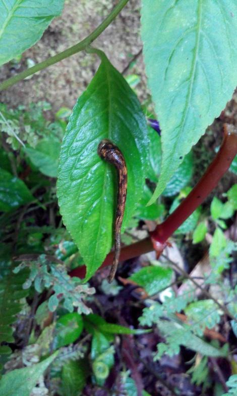 仁青崩寺又称莲花圣地,位于西藏林芝地区墨脱县东南约6公里的墨脱镇卓玛拉山上。是墨脱县修建最早和规模最大的寺庙,属藏传佛教的宁玛派。此行第二天的目标就是这里,这里也是此行最大的收获。植物学家一般都喜欢选择有寺庙的地点去考察,因为这些地方的植被保护得很好,可以发现许多物种。我们行走的石阶路非常平整,路边的原始森林保护的很好,林中穿流而下的小溪不断,看得出这里肯定隐藏了许多珍贵的物种。李老师此行计划寻找的榕属的十几个种大多都是在这条路附近发现的。但是多次的探入,让我们吃尽了苦头,这里到处都是名为蚂蟥(又称水蛭)的环节动物,它们平时潜伏在路边的树叶上,当有生物碰到树叶后,它们会把身体一侧黏在树叶上,另一侧像风筝一样晃动,只要有生物路过,它们就会跳到生物的身上,饱饱的美餐一顿,还不忘分泌一些抗凝血物质,使伤口流血不止。所以经常可以看到马和牛身上足有大拇指粗的蚂蝗,有些还爬到动物的眼睛里面吸血。