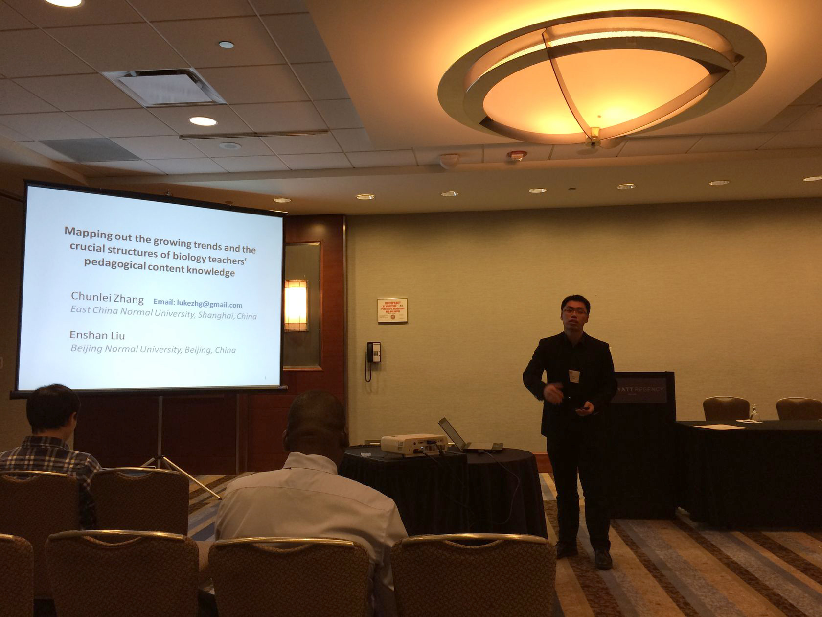 2015年4月11号,由美国科学教育研究协会(National Association for Research in Science Teaching,NARST)主办NARST2015国际年会于美国伊利诺伊州芝加哥市正式举行。此次会议的主题是“Becoming Next Generation Science Educators in an Era of Global Science Education Reform”。我校生命科学学院张春雷老师受邀参加此次会议,并在“在职教师教育”主题分会场,报告了题为“Mapping out the growing trends and the crucial structures of biology teachers' pedagogical content knowledge”的会议论文。报告过程中,听众兴表现出了浓厚的兴趣,并进行了较长的问答交流。