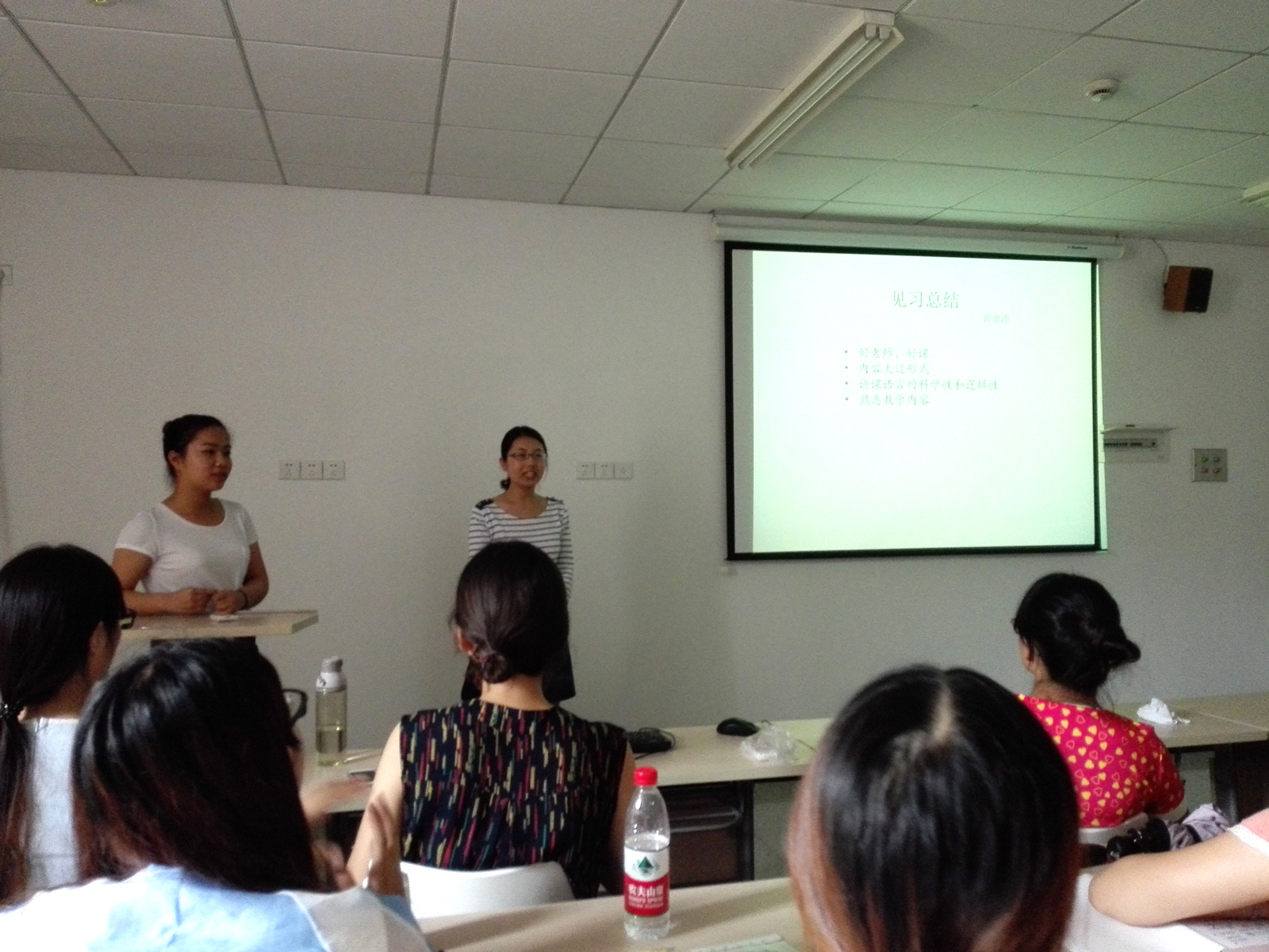 2015年6月24日下午1点钟,在生物楼218教室,生命科学学院12级全体免费师范生举行了“如何做好班主任”读书汇报会和教育见习总结会。发言的同学在大家鼓励的掌声中中自信地走上讲台,首先是第一组上台汇报,安翔同学代表全组进行了见习的总结汇报工作,汇报内容涉及见习过程中的任务安排,见习成果和见习心得等多方面。在见习心得分享环节安翔同学通过文字展示和小组成员上台演讲相结合的形式进行了分享,同学们在他们的分享交流中寻找的了思想的共鸣点。