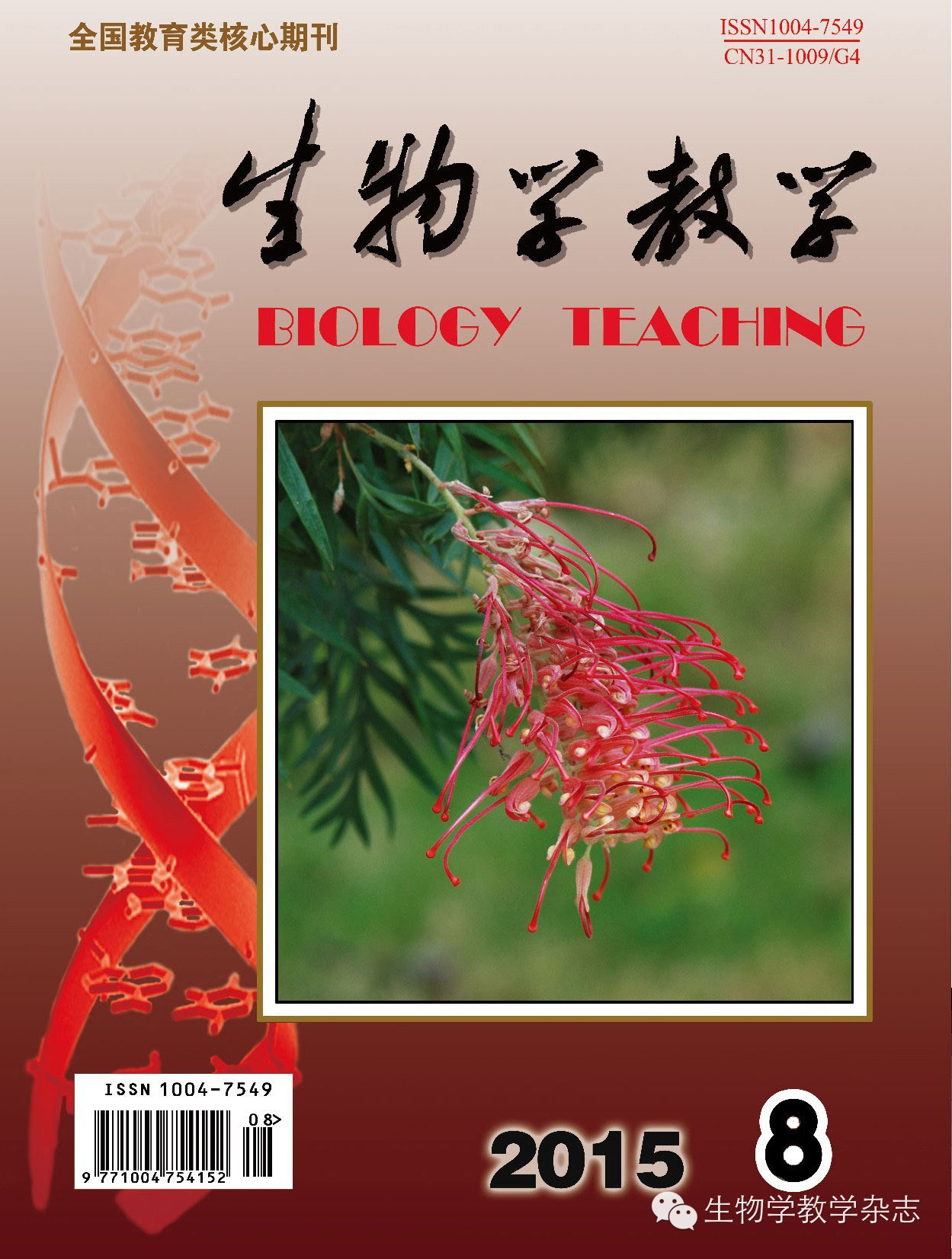 与其他中等教育学科类杂志是两本或多本期刊并列入选的情况相比,本刊是中等教育生物学教学类期刊的唯一入选。自2000年以来,《生物学教学》杂志已分别在2000年版、2004年版、2008年版和2014年版(共15年)中被评为中文核心期刊。