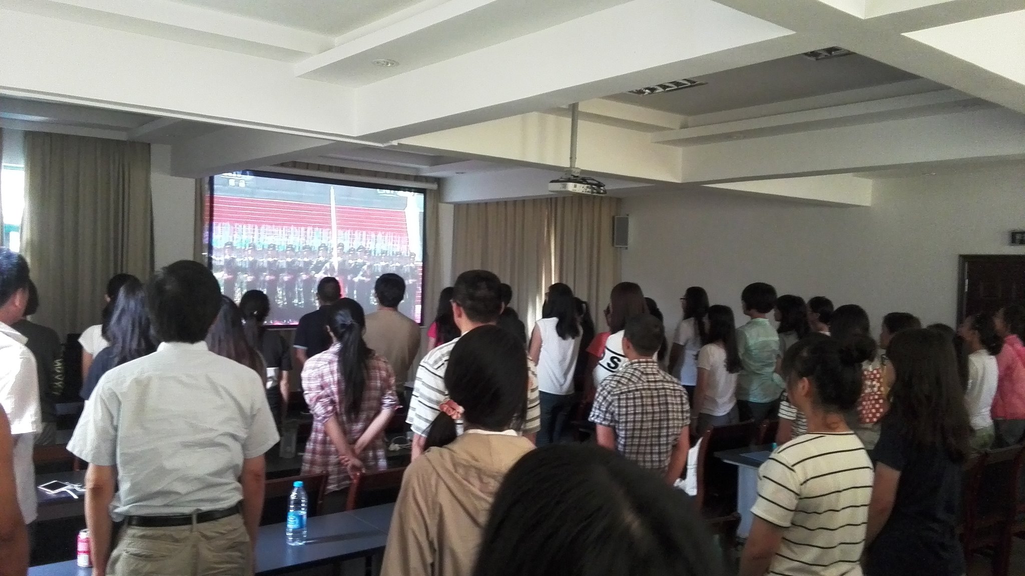 值得一提的是,9月3日恰逢中国抗日战争暨反法西斯战争胜利七十周年纪念日。为让同学们和老师们一起庆祝这伟大的胜利日,舒扬身为中国人的自豪感,老师们还想尽设法挤出9月3日上午的实习时间,组织同学们在天童山生态观测点会议室集体观看庄严的胜利日纪念大会和阅兵仪式。习主席的重要讲话让师生们感受到作为崛起大国公民的自豪和责任,而雄壮威武的受阅方队徐徐映入大家的眼帘时,战士们昂首挺胸、精神抖擞的面貌更让师生们振奋。牢记历史、珍爱和平、勿忘国耻、圆梦中华!置身于祖国的大好河山,如何将自身奋斗与国家强大、民族复兴道路相结合,振兴中华,相信是每位师生此刻发自内心的共鸣。
