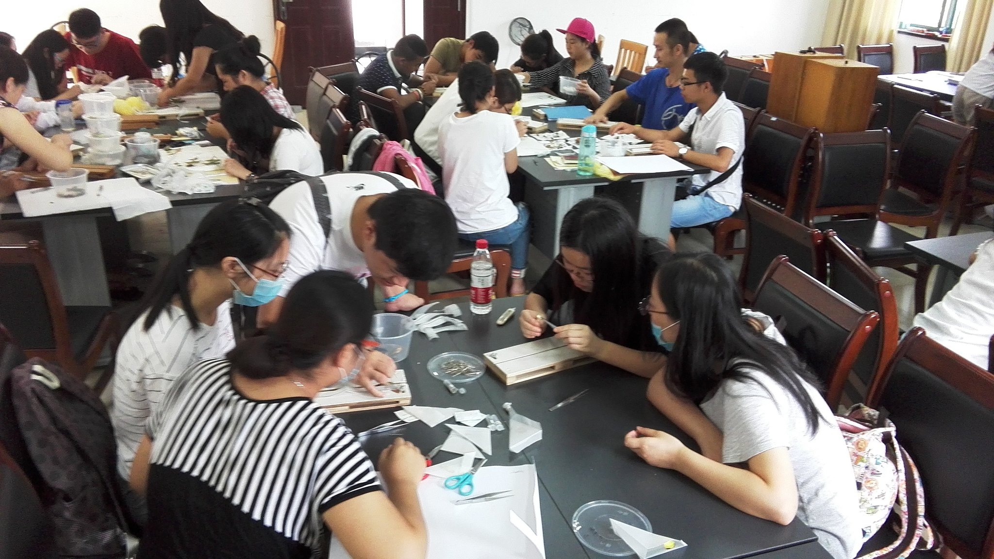 标本制作完成之后,同学们在老师以及研究生助教的指导下对17个目的昆虫进行了分类鉴别、标本制作,计算了不同生境下的生物多样性指数(香农-威纳指数以及辛普森多样性指数),对其中的差异以及造成这些差异的原因进行了分析。