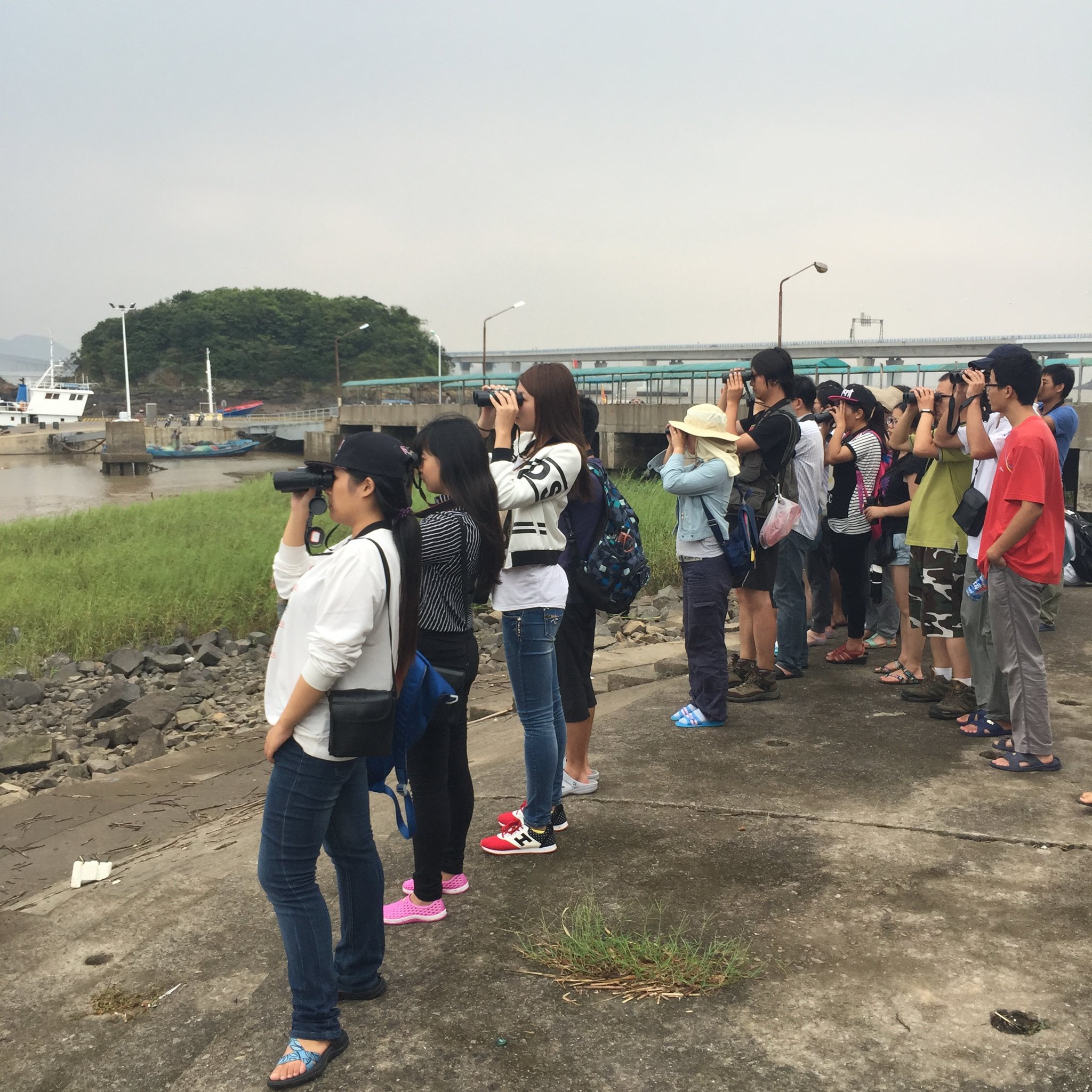 鸟类野外生态学观察也为同学们在此次动物学实习中留下了浓墨重彩的一笔。为了赶在鸟类活动的最高峰时期进行高效率的观察,同学们在清晨5点起床,在唐思贤、薄顺奇、何鑫老师的带领下来到常绿阔叶林、竹林、农田、海滩等不同生境对鸟类进行观察。在望远镜的帮助下,大家看到了一个不同寻常的远方世界,看到了一个丰富多彩的鸟类王国。不少同学第一次看到美丽鲜艳的翠鸟在河边吃鱼、第一次看到猛禽在空中滑翔、第一次看到白鹭在海边滩涂中觅食……镜头里自然生境中的野鸟,灵动而可爱,深深吸引了久居城市的同学们。