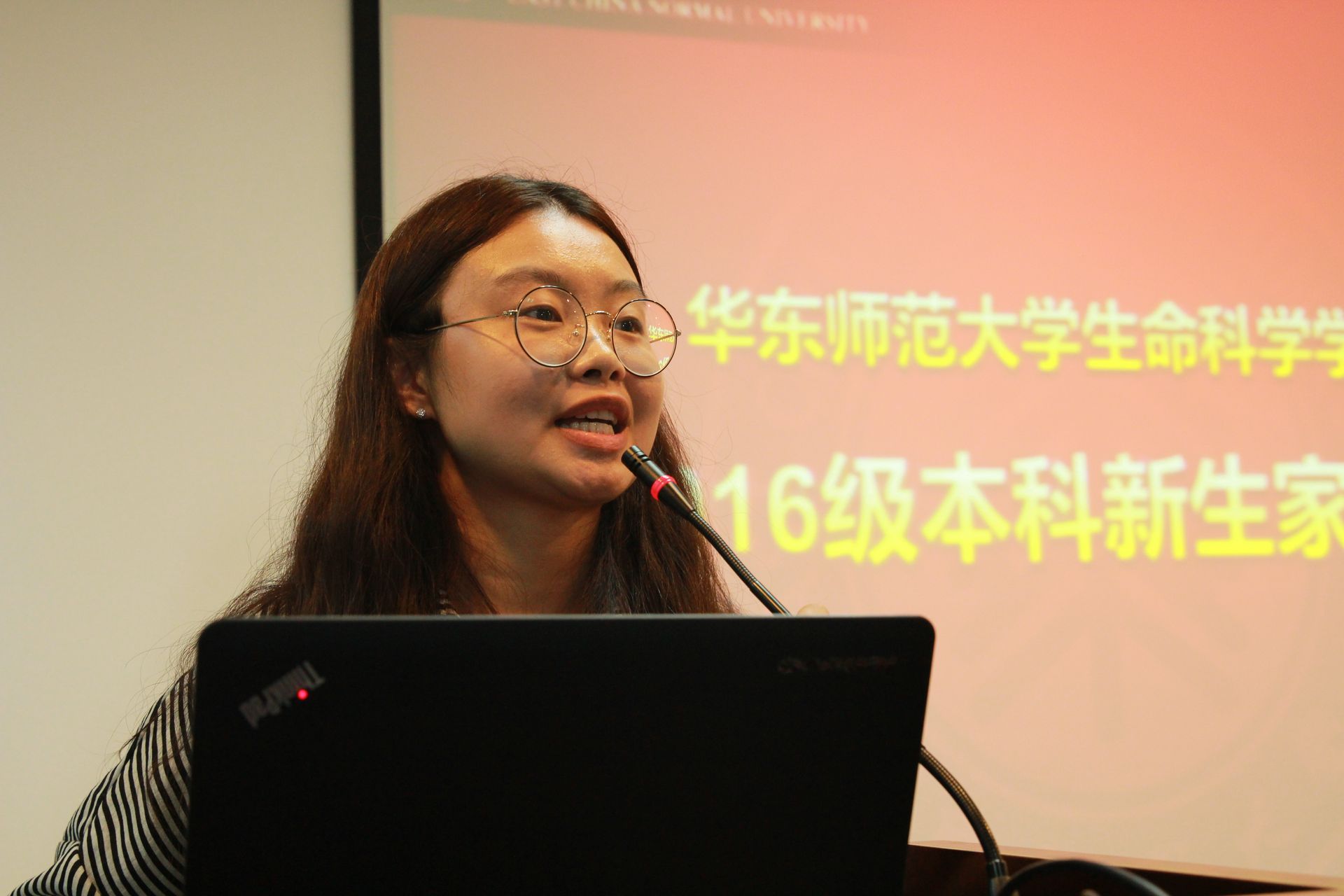李初旭辅导员代表学院对全体家长的到来表示热烈的欢迎,并对新生家长的支持与信任表示诚挚感谢。徐敏华老师从华东师范大学沿革、生命科学学院历史与现状的概况、学生培养情况多个方面介绍了我院院的组织架构、雄厚的教学资源和出色的教学成果,重点向家长介绍学院的人才培养特色以及毕业生就业情况等。最后,李初旭辅导员温馨提醒各位家长应帮助孩子迅速由被动学习向自主学习状态转变,并提出对新生提出安全、责任、自主、协作四点要求。