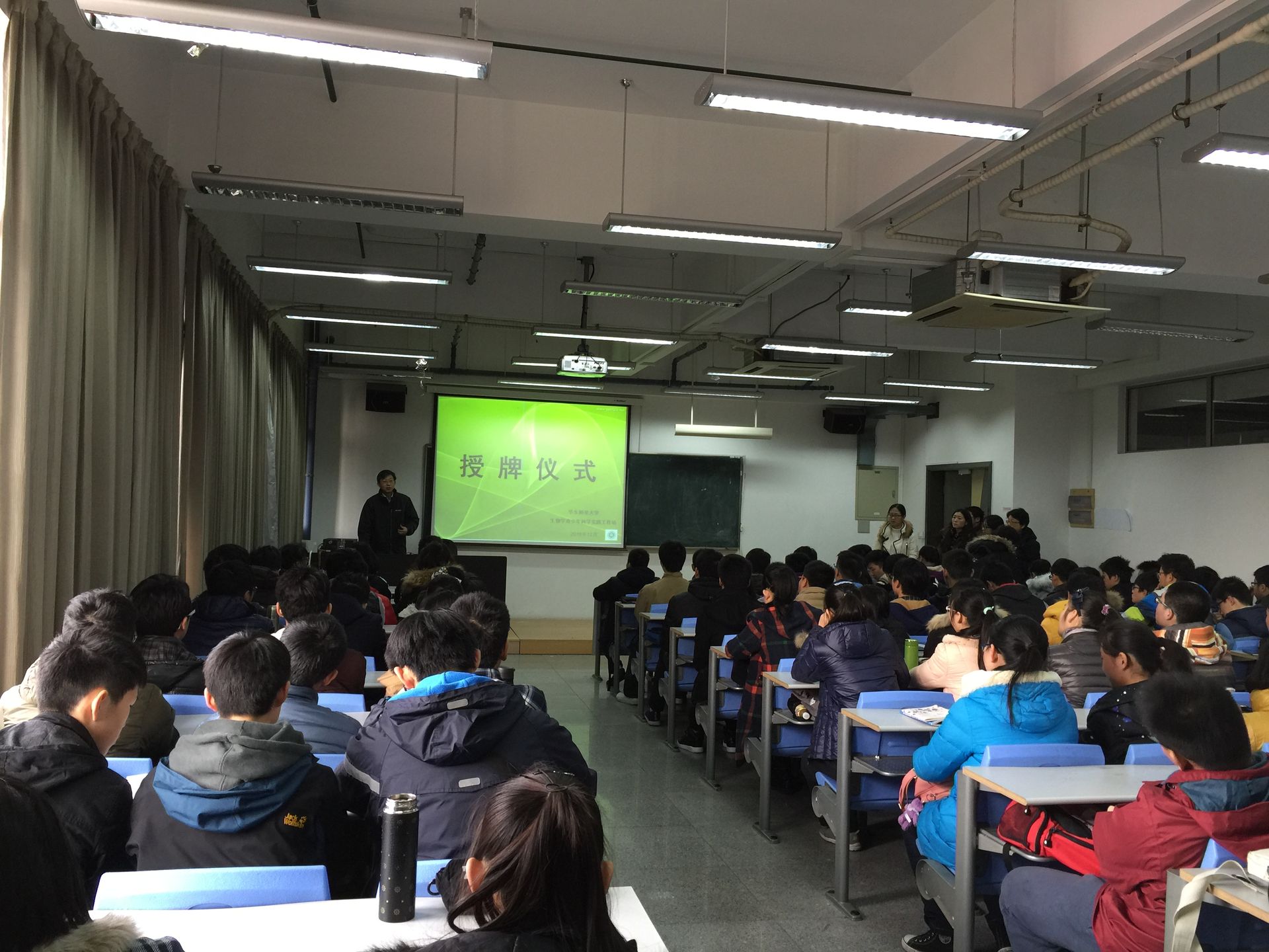 12月24日,华东师范大学生物学青少年科学实践工作站项目正式启动,开班仪式上副院长赵云龙教授为华师大二附中、华师大一附中、延安中学、文来中学,四个对接实践点授牌, 109名来自全市二十三所不同中学的高二学生参加了开班仪式并进行了首次课程体验。