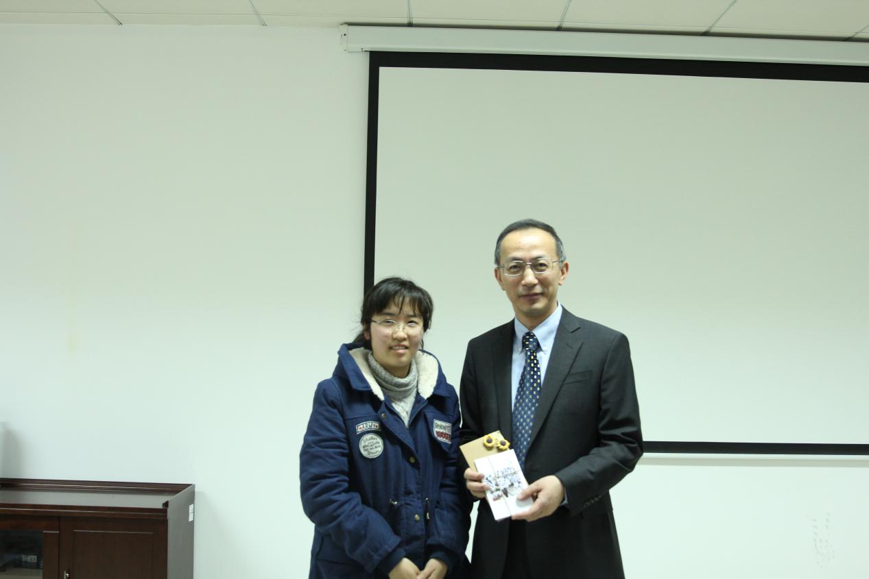 讲座结束后,同学们为何老师献上了精心准备的小礼物——用师大风景所做的明信片。何老师打开明信片,看到美丽的师大风景十分感动,表示希望以后能有更多的机会回母校交流。