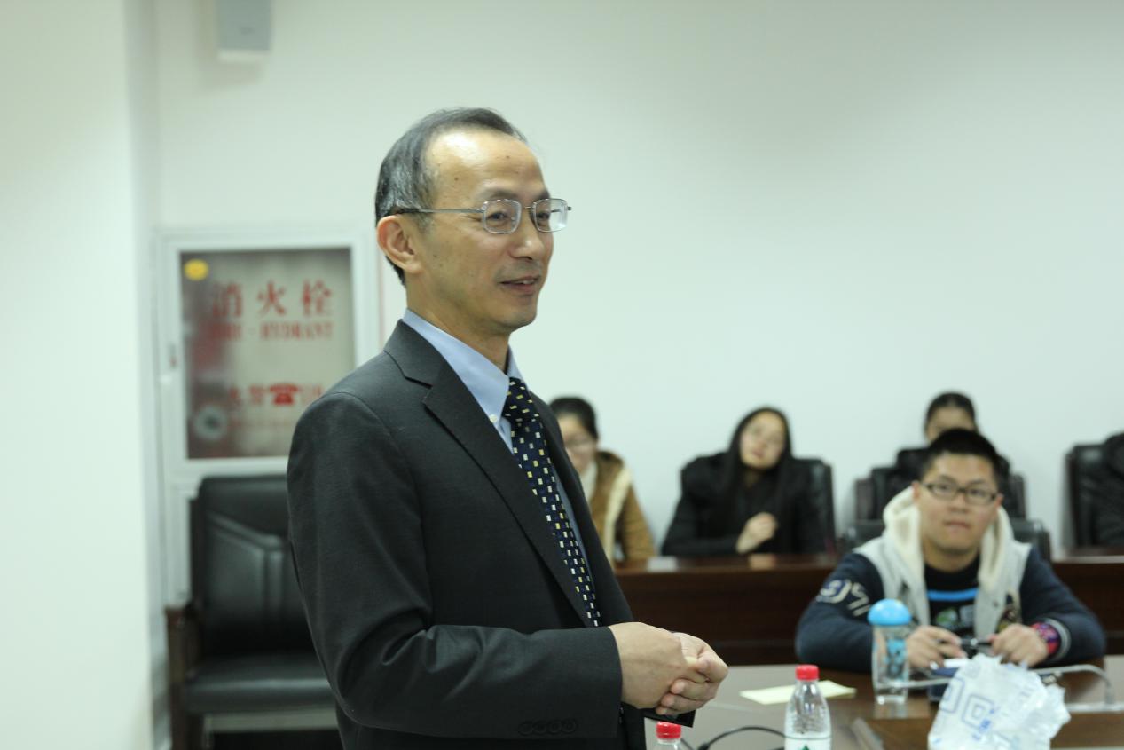 西装革履,精神抖擞,笑容亲切的何苗壮教授开场便提了这样的一个问题“大家为什么会喜欢科研呢?”同学们踊跃举手发言。“我觉得科学研究是一份很有乐趣的工作,是我最大的兴趣,做出的研究成果还能对社会有利”、“在大学里做研究,不仅可以做出有意义的结果,还能培养出许多人才,将知识传承下去”