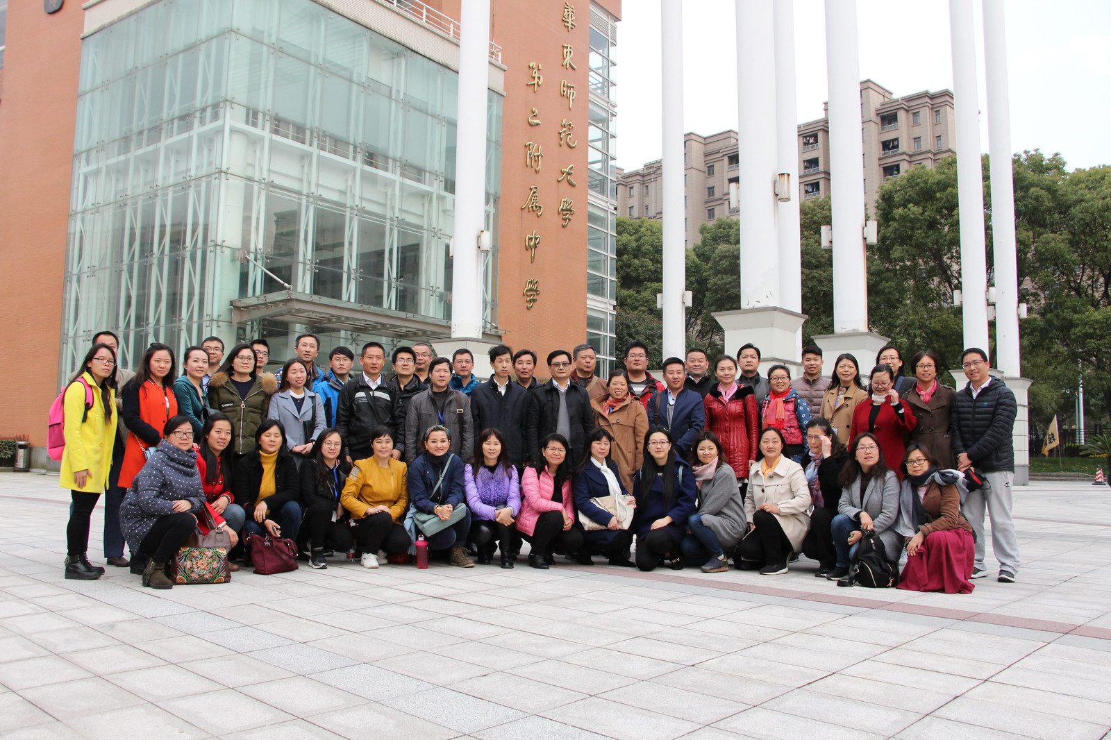 与会教师参观华师大生物博物馆 | 与会教师在华东师大二附中合影 |