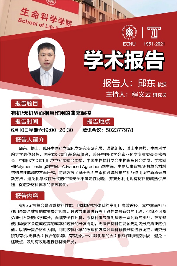 报告题目:有机/无机界面相互作用的曲率调控