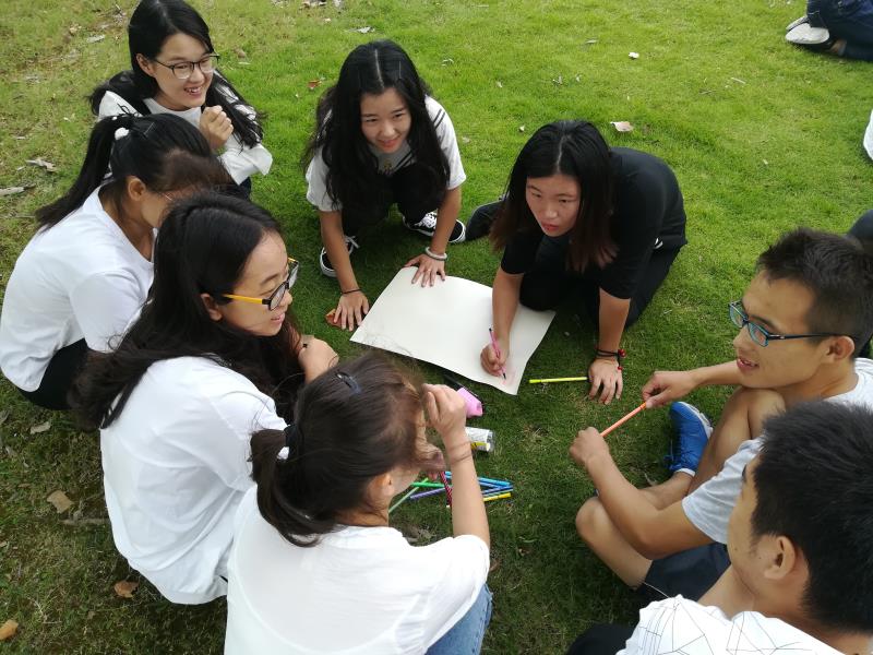 “你从哪里来”和“贪吃蛇”两个简单而又有创意的游戏让同学门进行了互动破冰。在主持人的带领下,同学们通过报数分为逐梦队,闪闪闪第二队,幸运三叶草队和生命闪药队。4队,每个小组为自己的小组起队名口号、画队徽队旗、选队长,并进行了5分钟的团队展示,活动气氛也在不断升温。
