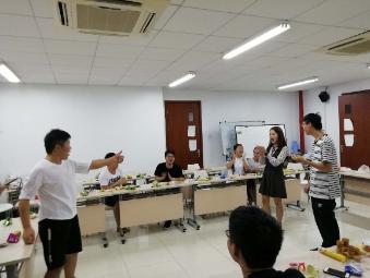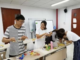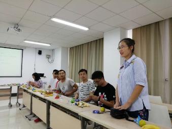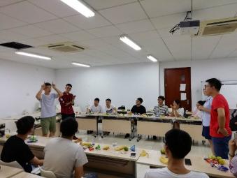本次联谊会由班长牛鑫主持,其他班委协助完成。活动由“姓名连连记”、“疯狂猜猜猜”和“水果大作战”三个环节构成。第一个环节“姓名连连记”,大家快速介绍自己的姓名、研究方向和兴趣爱好等,然后随机挑选一个人,把所有同学的名字都重复一遍,出错了就要接受惩罚, 通过这个环节,不少同学找到了老乡,也增加了对彼此的了解。第二个环节“疯狂猜猜猜”,首先通过抽签将同学们分为A组和B组,分别坐在教室两侧进行“你画我猜”,搞笑的肢体动作,意想不到的答案,让同学们放声大笑。第三个环节“水果大作战”包括“快速削苹果”和“一口吃橘子”两个游戏,女同学心灵手巧,3分钟内削好苹果,男同学豪放不羁,5秒内吃完橘子,每个环节都会打分,最后A组同学获胜,并获得了相应的小礼品。通过游戏,打破了同学们之间的拘束,并提高了大家之间的默契度,最后,同学们边吃月饼边看电影,一起感受中秋佳节的美好氛围。