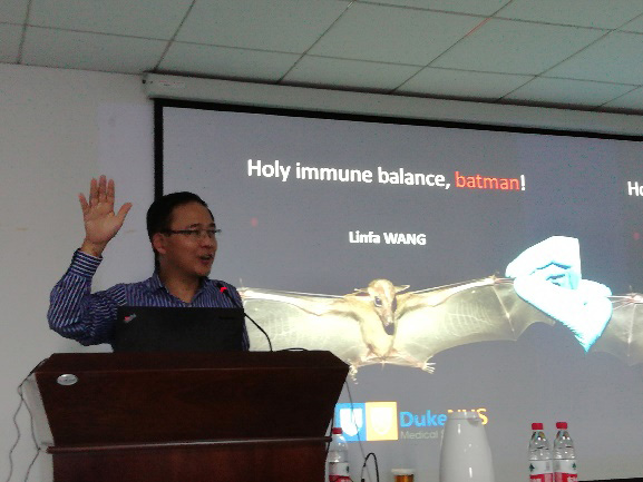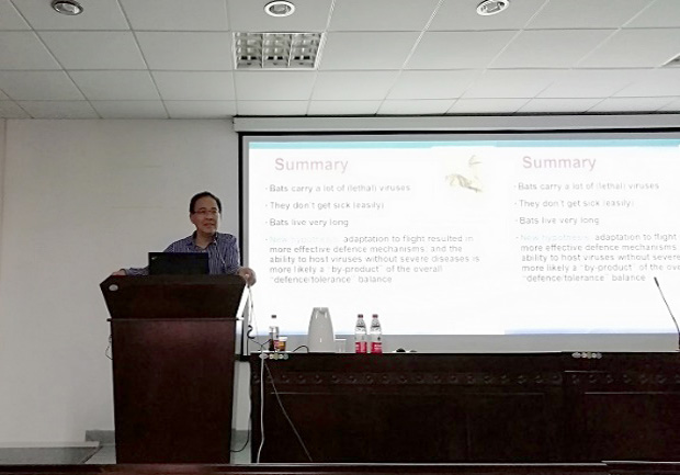 作为唯一一种能够飞行的哺乳动物,为什么蝙蝠能够和SARS、MERS、Ebola等致命病毒“和平共处”?王院士以独特的视角提出了一种蝙蝠机体对病毒产生抵抗或耐受的平衡动态机制,并从进化角度阐明了蝙蝠能够与病毒“和平共处”的分子免疫学机理,引领了科研的前进方向。王院士长期以蝙蝠为实验模型,就形象地称自己为“蝙蝠侠”,现场语言风趣幽默,让同学们对蝙蝠这种古老的哺乳动物有了更加深入的认识。会后王院士就同学们所提出的问题进行了耐心的回答,整个报告气氛热烈,取得了非常好的效果。
